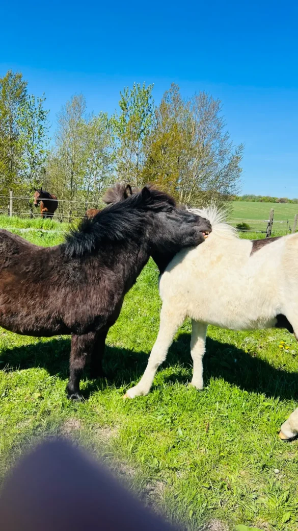 Djöfull hann inte bli kastrerad innan det var dags för hästarna att få njuta av betesgången så Nettis Nonne får vara hans sällskap samt lekkamrat. Ooh, jisses vad de busar bra tillsammans och putsar varandra. Här är ett axplock utav deras bus i sommar.